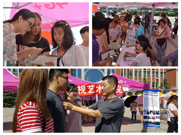 8月27日影视艺术学院迎新工作在校党委的关怀下,在院长陈烈、副书记宋朝霞的带领下开始了我院第一届迎新工作。学院领导在布置工作前要求教职工全员上岗,细致分工,以饱满的热情迎接我们第一届新生。迎新期间,院长与副书记亲自在现场指导迎新工作,为同学们佩戴校徽,与家长促心交谈,查看学生宿舍,解决疑难问题。在报到现场,老师和学生辅导员们头顶烈日,给新生耐心讲解注意事项,第一时间消除了大家初来乍到的陌生感,也给了家长们一份莫大的安慰。