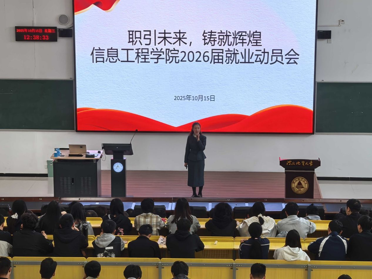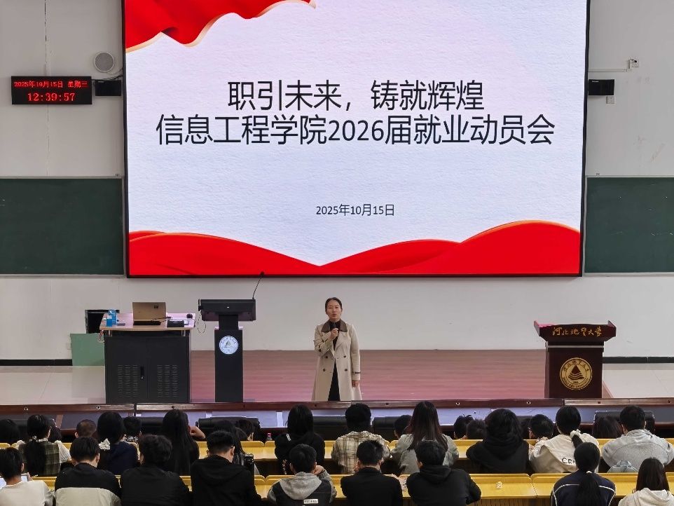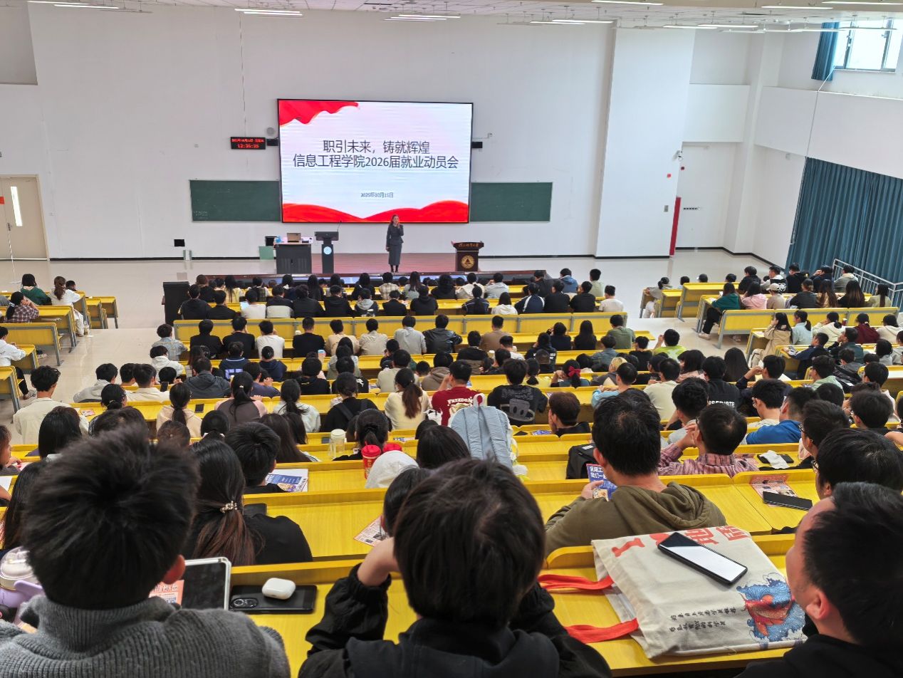 为切实做好2026届毕业生就业工作,帮助同学们认清当前就业形势,把握求职机遇,10月15日,best365足球官网信息工程学院隆重召开“职引未来 铸就辉煌”毕业生就业动员大会。学院党委书记郭宏、副书记贾佳、副院长赵占芳、26届辅导员陈皓天、张琦出席会议,2022级全体毕业生参加。