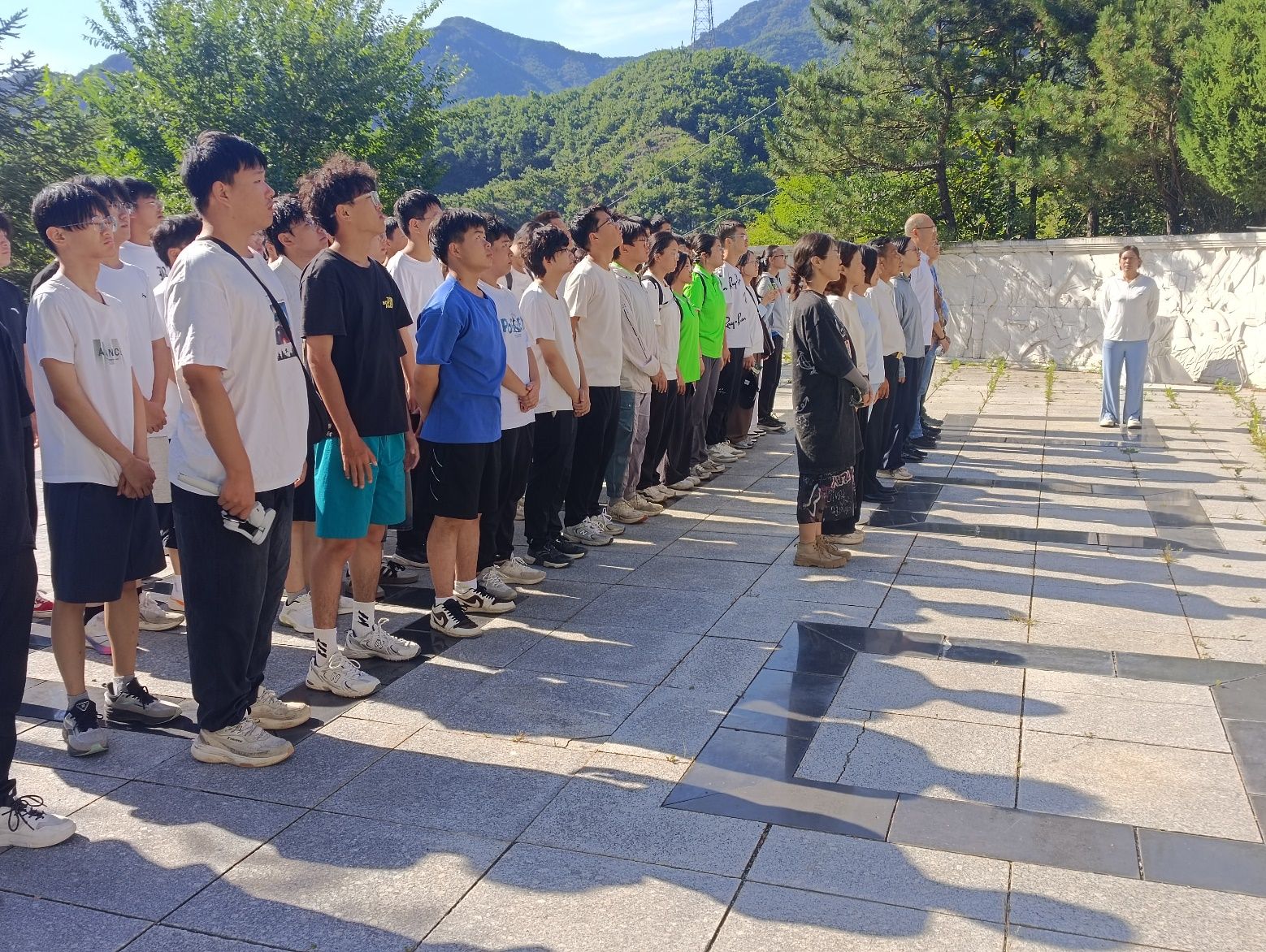 时值中国人民抗日战争胜利80周年,7月14日,best365足球官网地球科学学院秦皇岛地质认识实习临时党支部,组织师生从新落成的英武山地质研学基地出发,奔赴青龙满族自治县花场峪抗日纪念馆及烈士陵园开展主题为“铭记抗战历史,传承爱国主义精神”纪念抗战胜利80周年暨主题党日活动。
