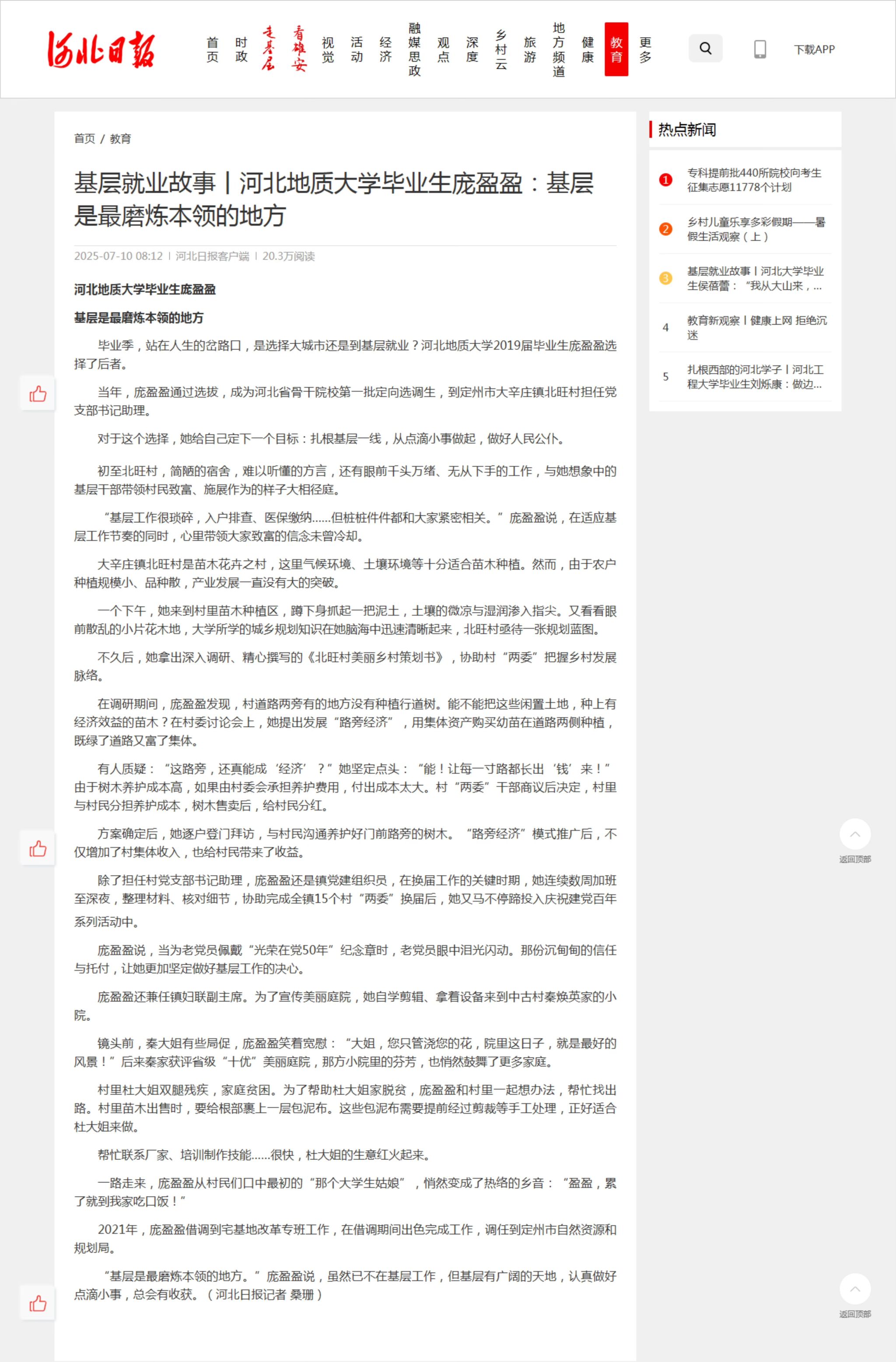 【河北日报】基层就业故事丨best365足球官网毕业生庞盈盈:基层是最磨炼本领的地方