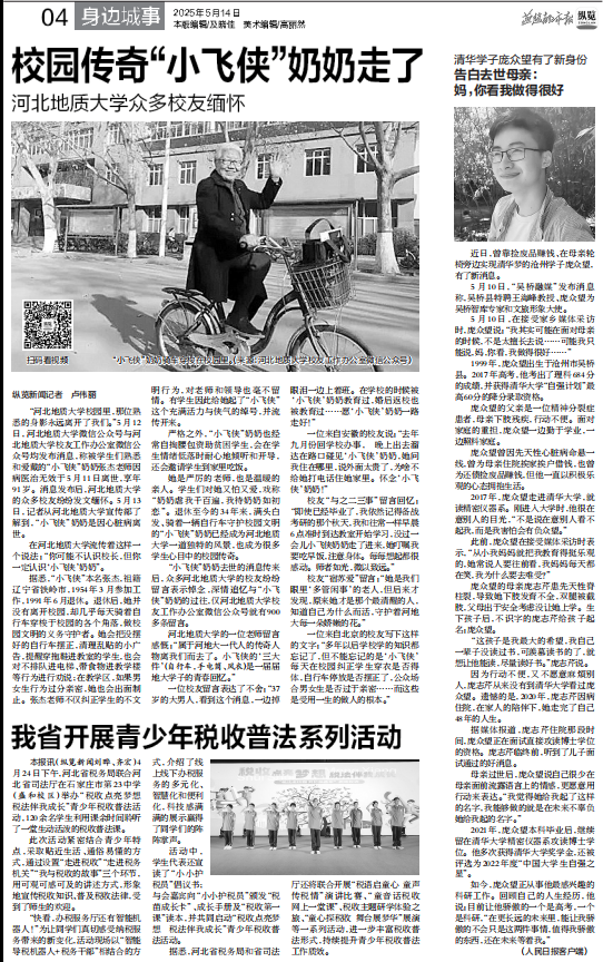 【河北新闻网、燕赵都市报、纵览新闻】多家媒体追踪:“小飞侠” 奶奶病逝,校园文明使者的温暖记忆永存