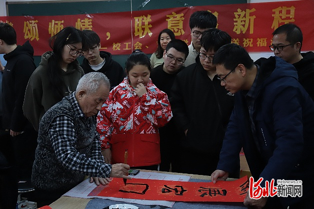 河北新闻网讯 为弘扬中华优秀传统文化,传递师生真情,元旦前夕,由best365足球官网工会、艺术学院联合举办的“书韵颂师情,联意启新程”送春联活动在其校本部艺术实验楼举行,现场创作1600余幅春联,为广大教职工送去红红火火的祝福。