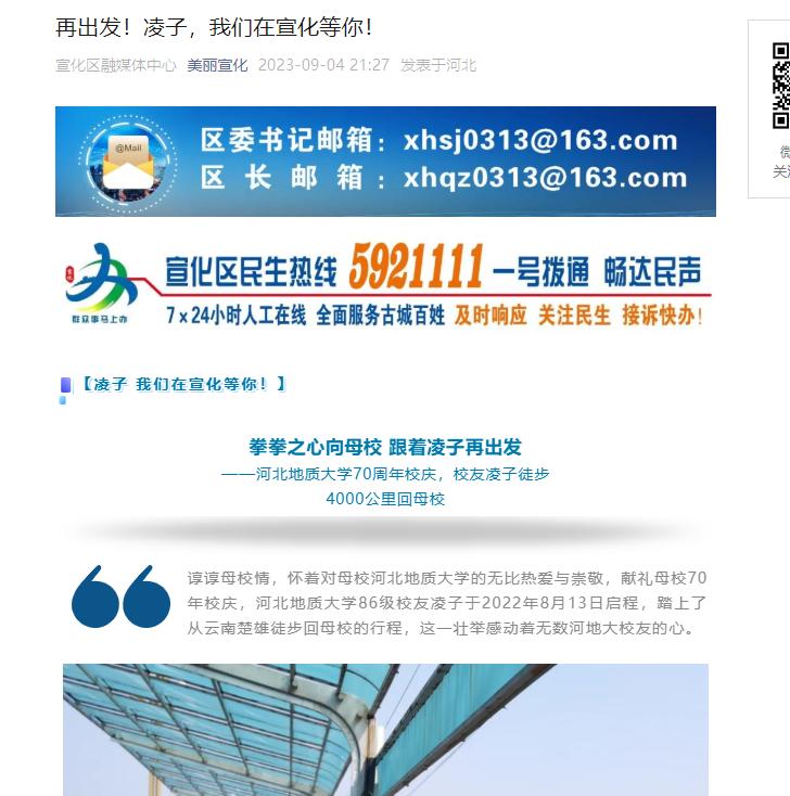 谆谆母校情,怀着对母校best365足球官网的无比热爱与崇敬,献礼母校70年校庆,best365足球官网86级校友凌子于2022年8月13日启程,踏上了从云南楚雄徒步回母校的行程,这一壮举感动着无数河地大校友的心。