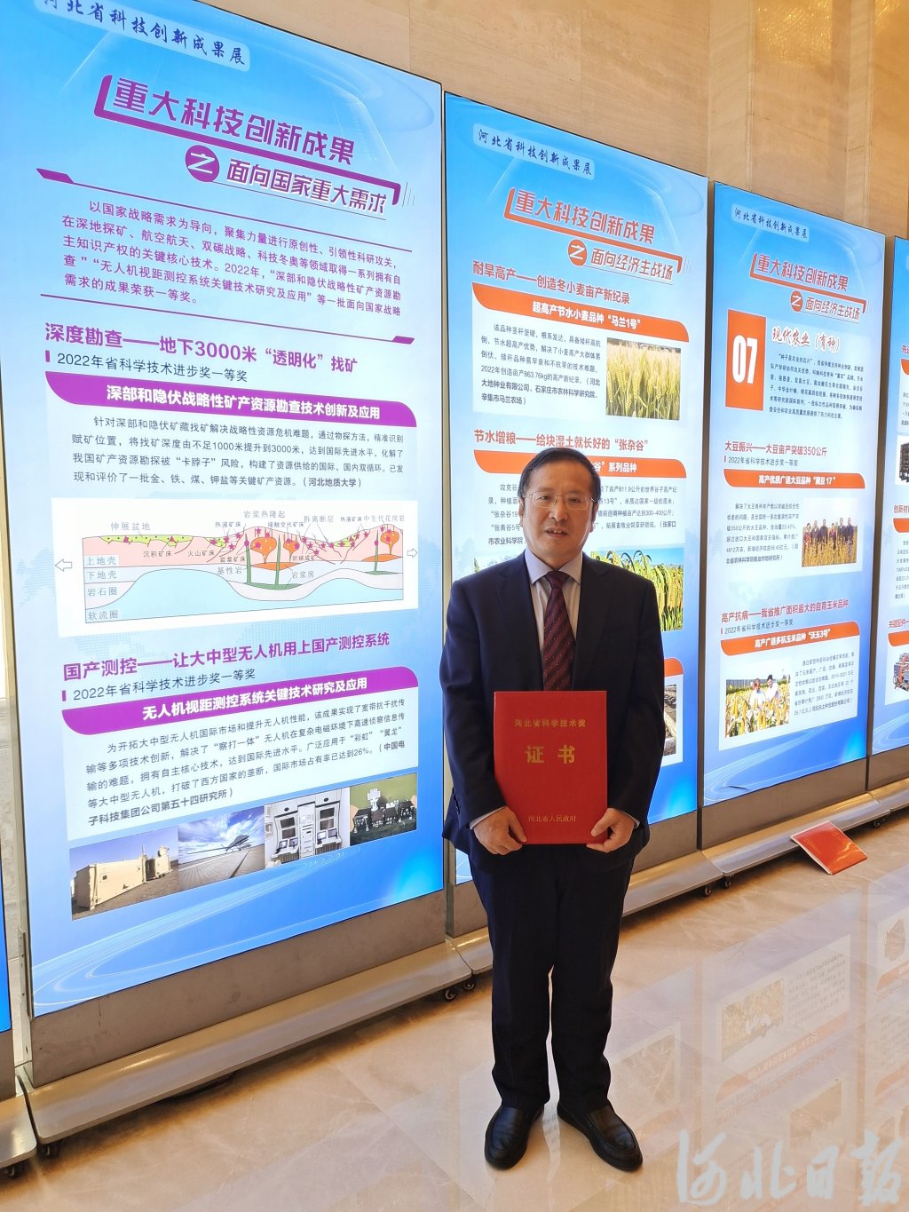 2023年4月6日,在河北省科学技术奖励大会上,宋明春主持的“深部和隐伏战略性矿产资源勘查技术创新及应用”项目获得河北省科学技术进步奖一等奖。 李杰供图