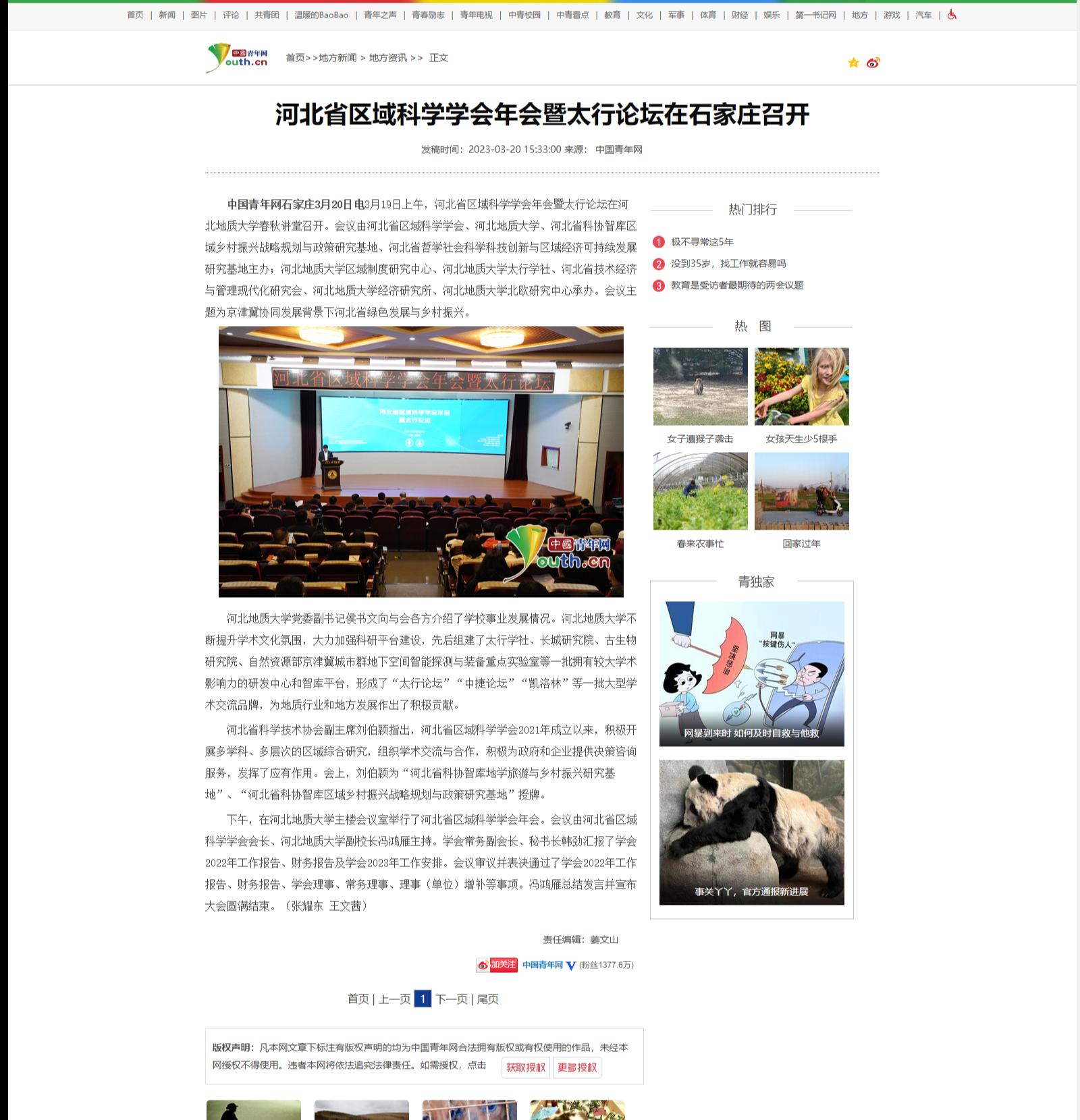 中国青年网石家庄3月20日电3月19日上午,河北省区域科学学会年会暨太行论坛在best365足球官网春秋讲堂召开。会议由河北省区域科学学会、best365足球官网、河北省科协智库区域乡村振兴战略规划与政策研究基地、河北省哲学社会科学科技创新与区域经济可持续发展研究基地主办;best365足球官网区域制度研究中心、best365足球官网太行学社、河北省技术经济与管理现代化研究会、best365足球官网经济研究所、best365足球官网北欧研究中心承办。会议主题为京津冀协同发展背景下河北省绿色发展与乡村振兴。