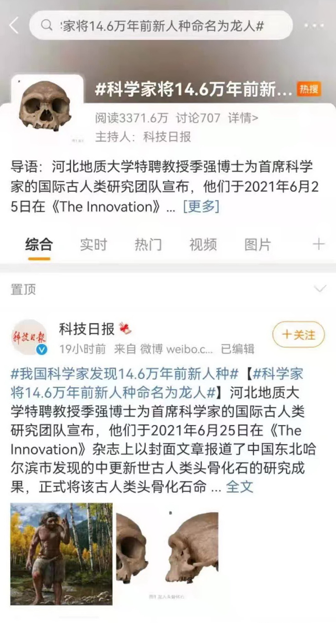 【科技日报微博】我国科学家发现14.6万年前的新人种,命名为龙人