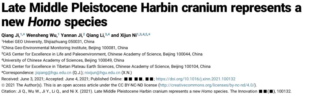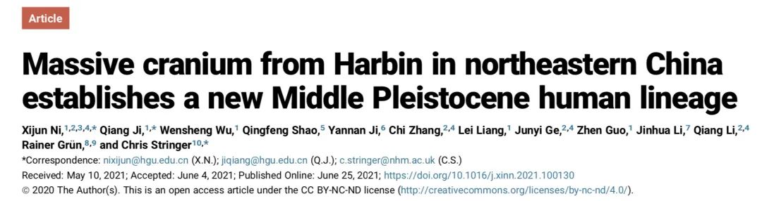 北京时间6月25日晚间,细胞出版社(Cell Press)旗下期刊The Innovation(中国科学院青年创新促进会青年科学家与Cell Press共同创建的综合性英文学术期刊)以封面故事形式同期发表了3篇论文,来自中英澳的研究人员报道了已知的最大人属头骨化石——best365足球官网地球科学博物馆藏有的一块保存近乎完美的古人类化石,即哈尔滨头骨化石。