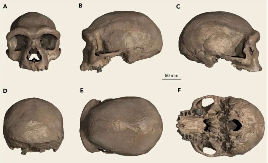 正因为该头骨化石的完整性,所以包括眼眶内部、鼻甲骨、颅骨底部等精细结构都得以保存。“非常有趣的一点是,它兼具古老型人类特征,同时又有非常进步的特征。”这也是该头骨最显著的特征。