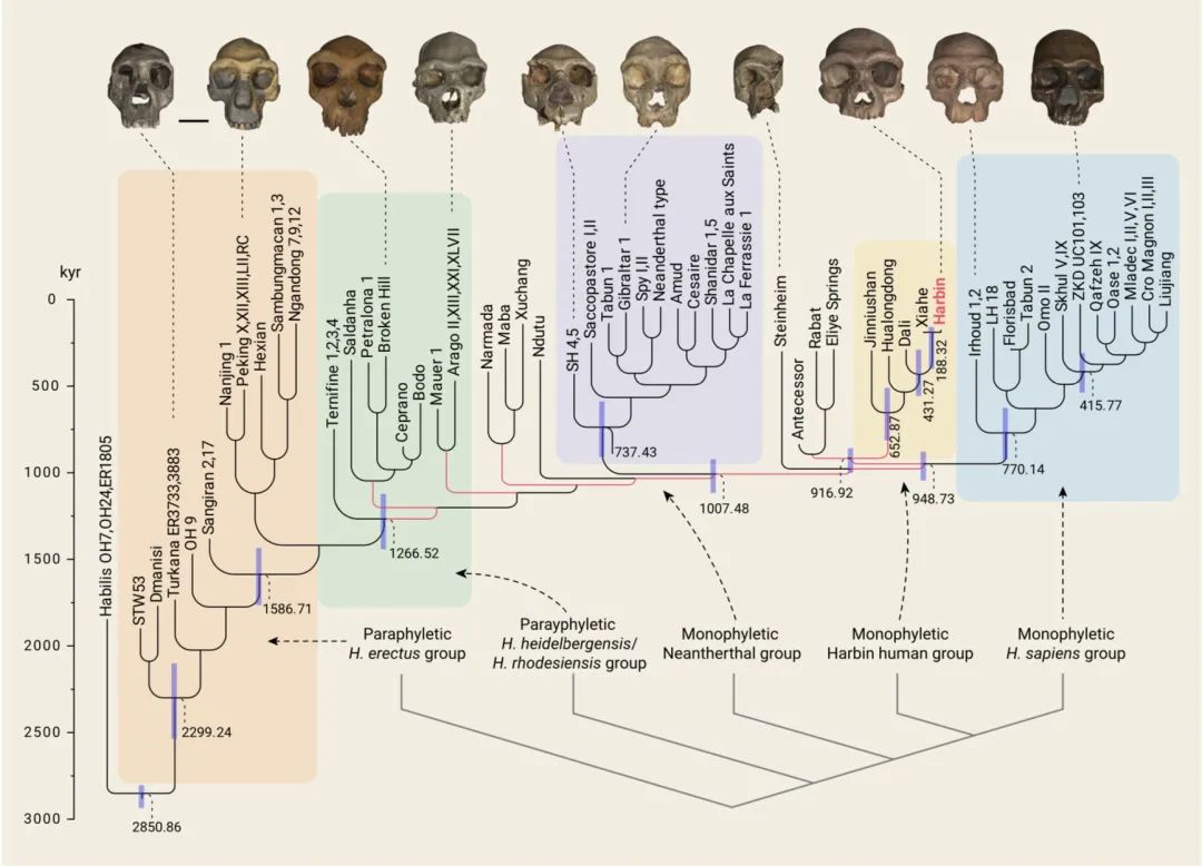 研究认为,从哈尔滨头骨中得出的发现有可能改写人类演化史的主要内容。在智人走出非洲之前,龙人、大荔人、金牛山人、华龙洞人、夏河人等所属的这一支系,作为智人的姊妹群在亚洲已经演化了数十万年。这一支系很有可能在基因和文化方面影响了后期到来的智人种群。“总而言之,哈尔滨头骨为我们了解人属的多样性,以及不同人种和种群之间的演化关系提供了更多的证据。”