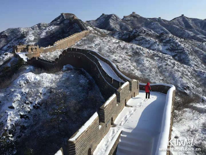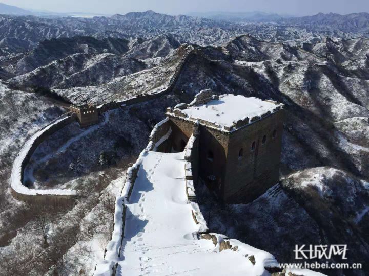初冬的第一场雪渲染漫山遍野,此刻长城内外“雪山似海,边墙如龙”。