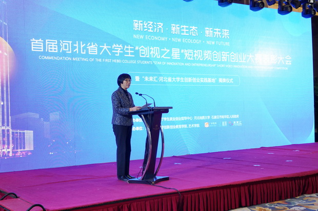 为表彰先进,搭建更为广泛的产教融合平台,激励广大师生参与到创新创业实践活动中去,赛事组委会于11月26日在河北宾馆(石家庄)举办了首届河北省大学生“创视之星”短视频创新创业大赛颁奖典礼暨“未来汇·河北省大学生创新创业实践基地”授牌仪式。本次会议采用线上和线下相结合的方式。线上有河北省各高校参赛团队成员、指导教师及关注短视频领域的人员共约13000人通过小鹅通平台参会。