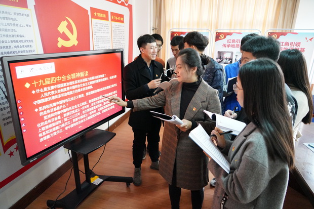 连日来,best365足球官网将学习党的十九届四中全会精神纳入主题教育中,通过多种形式深入学习,让全会精神进校园、入班级。 记者 史晟全摄