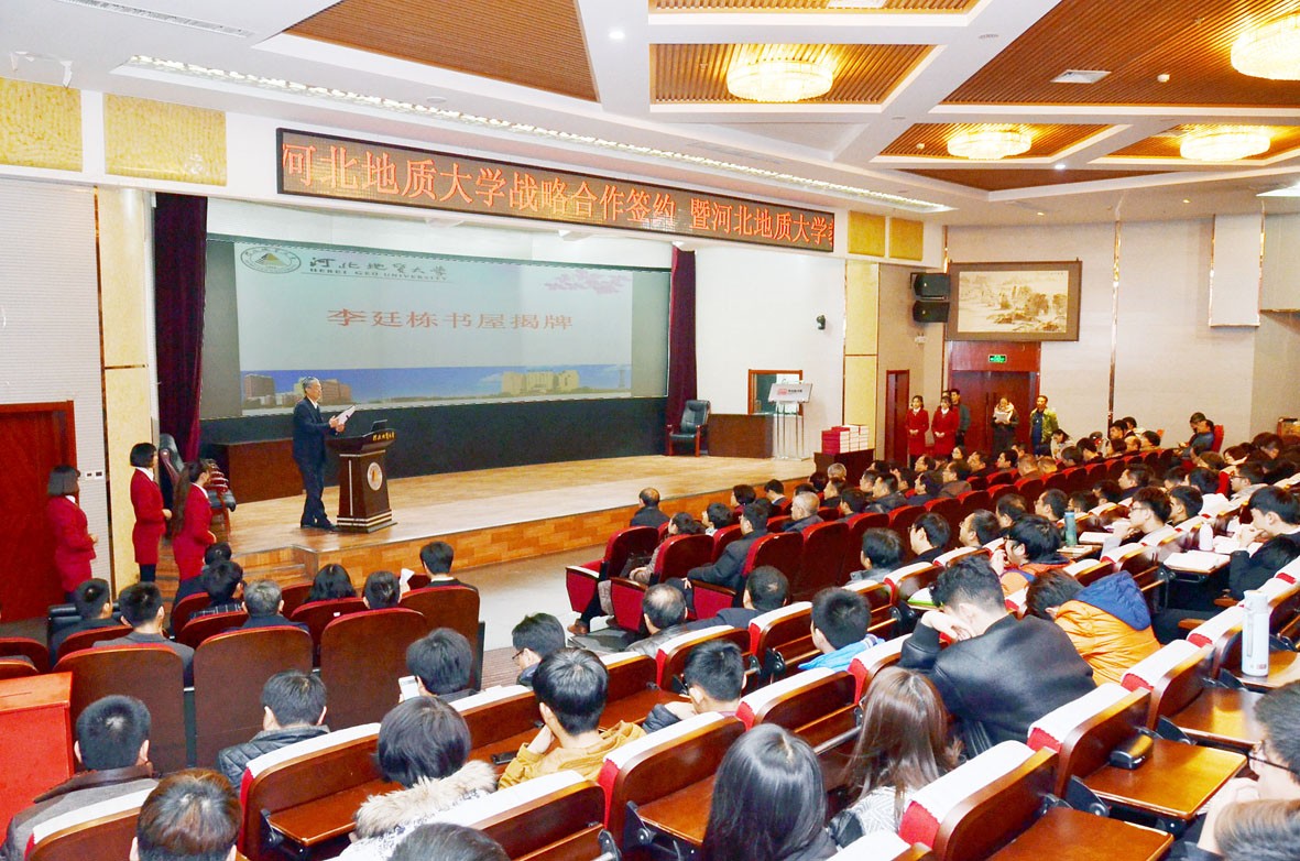 同时,大会还举行了李廷栋书屋揭牌仪式。李廷栋把多年珍藏的近万册图书和地质图册捐赠给学校,其中不乏绝版外文书籍。