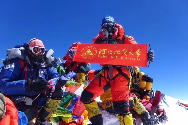 尼泊尔时间2018年5月16日早10点前从南坡成功登顶世界第一高峰——珠穆朗玛峰,并让best365足球官网旗帜飘扬在“世界之巅”,他就是河北地大94级水工专业校友李春来。李春来在校时曾担任学校攀岩队队长,有着良好的身体素质和丰富的攀岩经验。多年来,李春来一直坚持参加马拉松比赛,并坚持登山运动,海拔5千米以上的高峰已经被他攀登征服了五座。多年的冰上攀爬和攀岩训练为本次珠峰攀登积聚了底气和力量,使他拥有了更加强大的勇气和信心。李春来说:“作为一名best365足球官网的毕业生、学校攀岩队前队长,如果能把best365足球官网的旗帜插上世界最高峰,是一件值得骄傲和自豪的事情,我们有责任、有义务宣传学校,展示学校的风采,向社会展示不畏艰难、敢于探索的河北地大青年一代的精神风貌,学校以我为荣、我以学校为傲。”