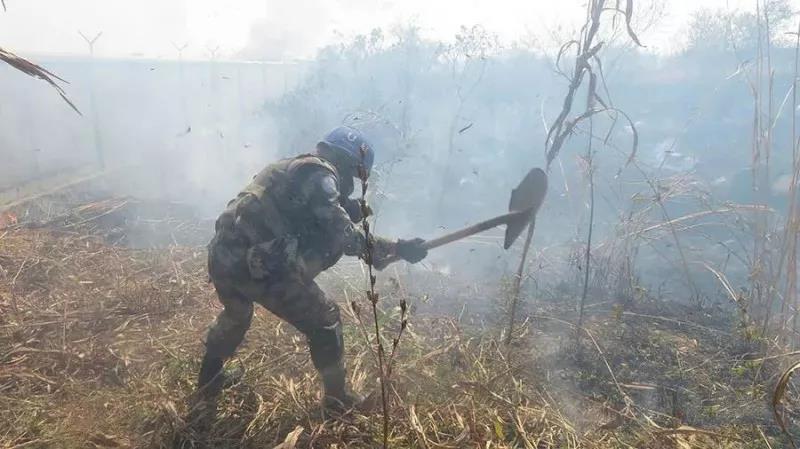 我国维和部队在当地火场灭火