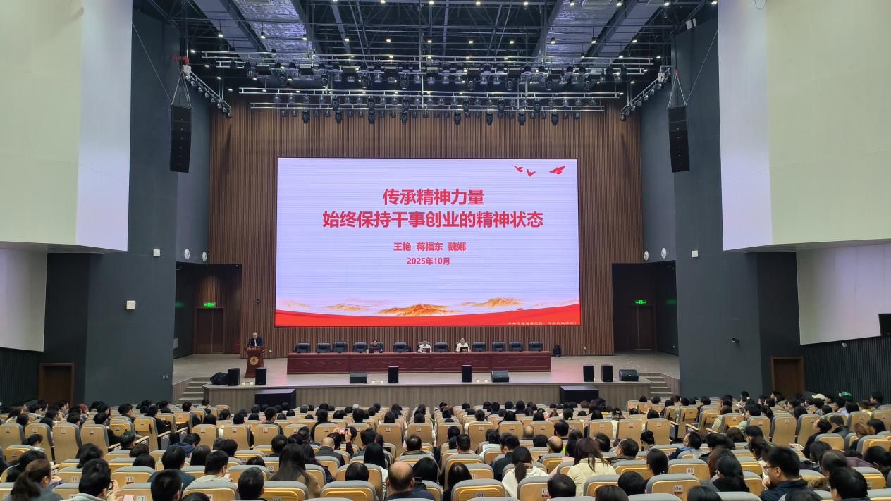 为深入学习贯彻党的二十届四中全会精神,切实用全会精神传承精神力量、提振干事创业精气神,推动学校高质量发展。10月30日下午,学校邀请省委党校蒋福东、王艳、魏娜三位党校老师,开展“传承精神力量,始终保持干事创业的精神状态”专题培训。