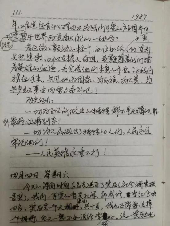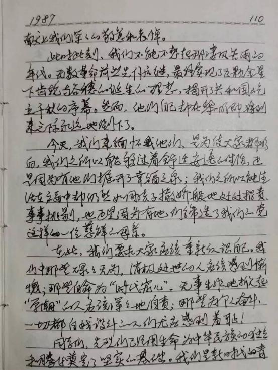 1987年校友范永泉在日记中抄录了这篇致词
