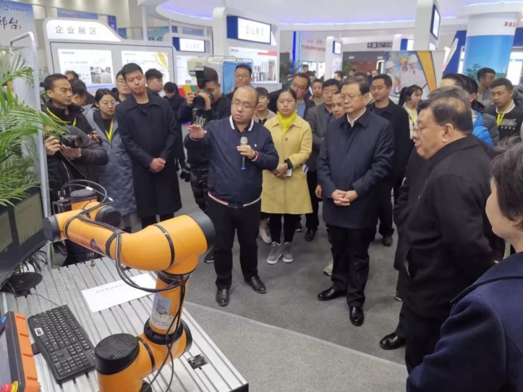 蒙洋在河北省创业就业成果展上,聚焦智能制造协作机器人产业落地与产教融合项目与河北省副省长张古江同志一行汇报交流