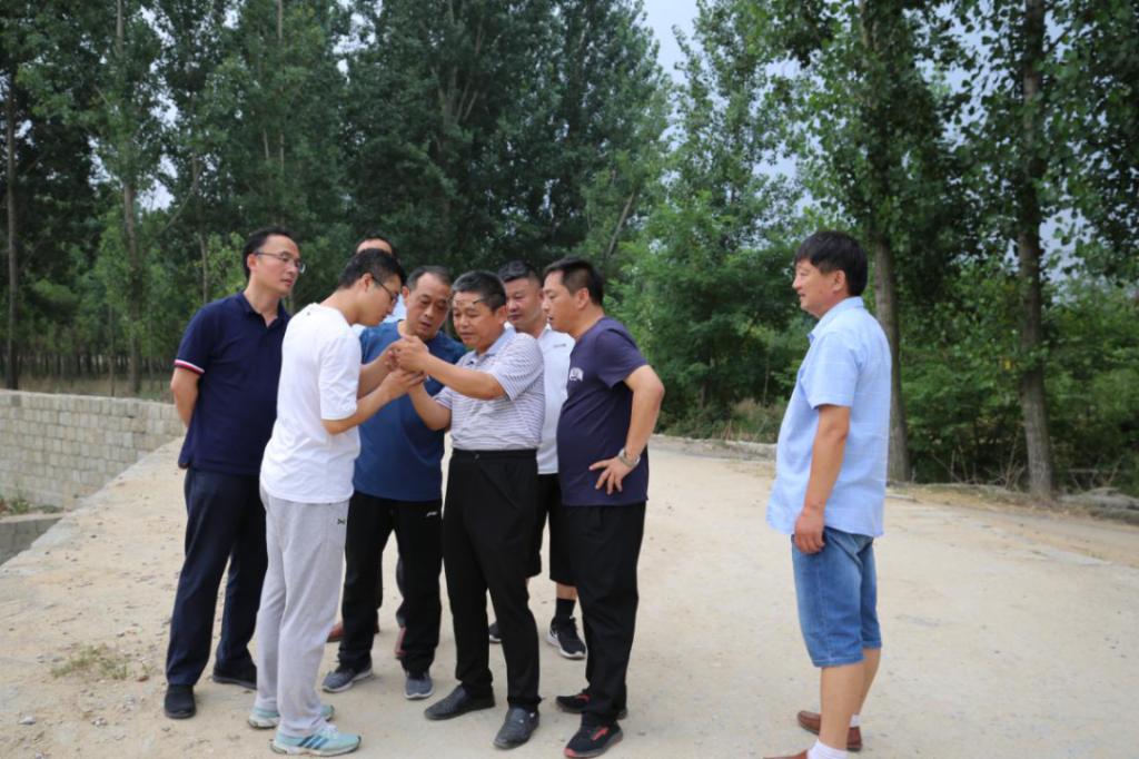 山东省第五地质矿产勘查院党委书记周绍智在泰安市天宝镇赵庄村开展水文调查及物探定井工作